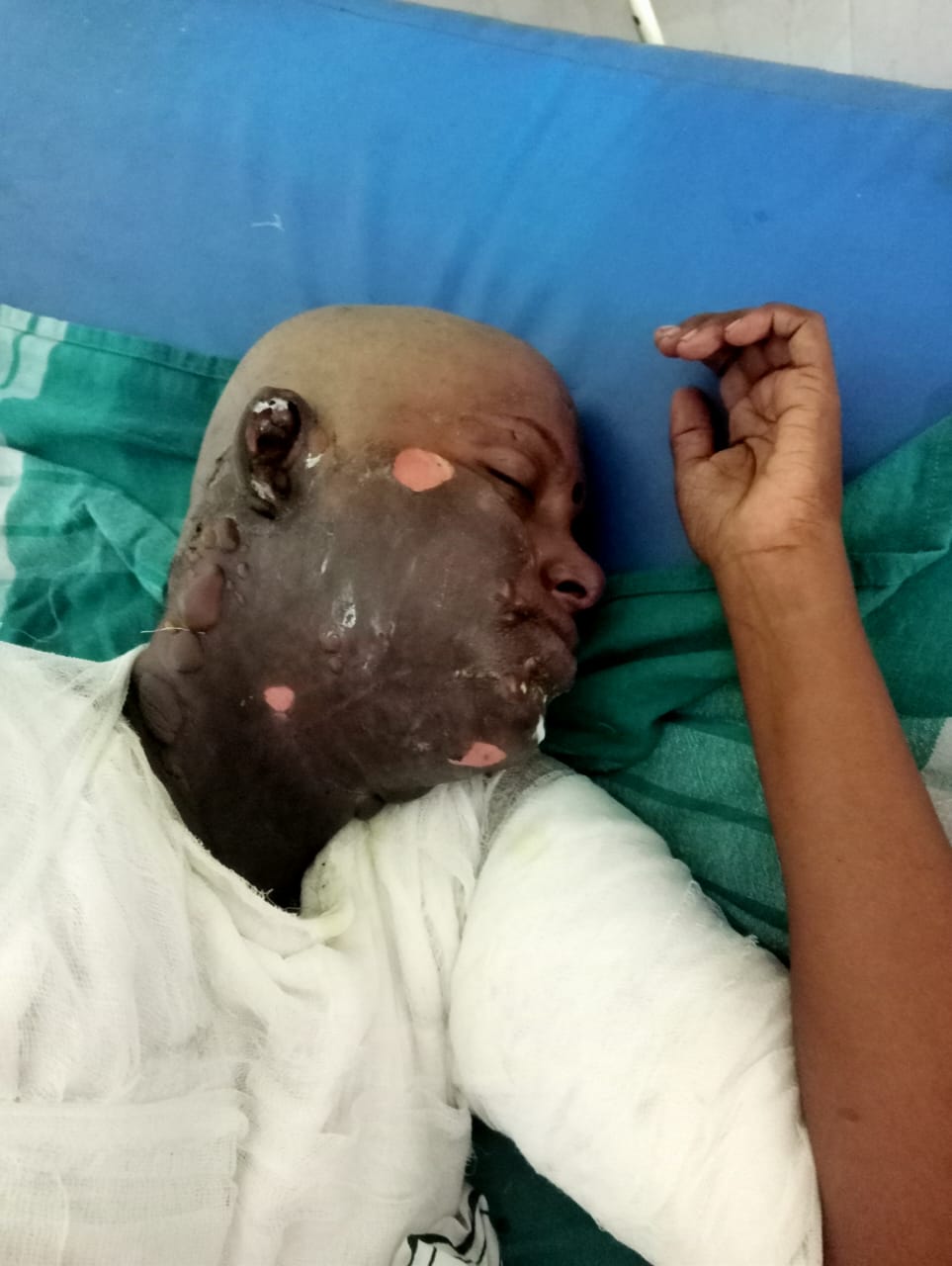 Nature of aliment : Terrible accident, severe burns to both lower limbs